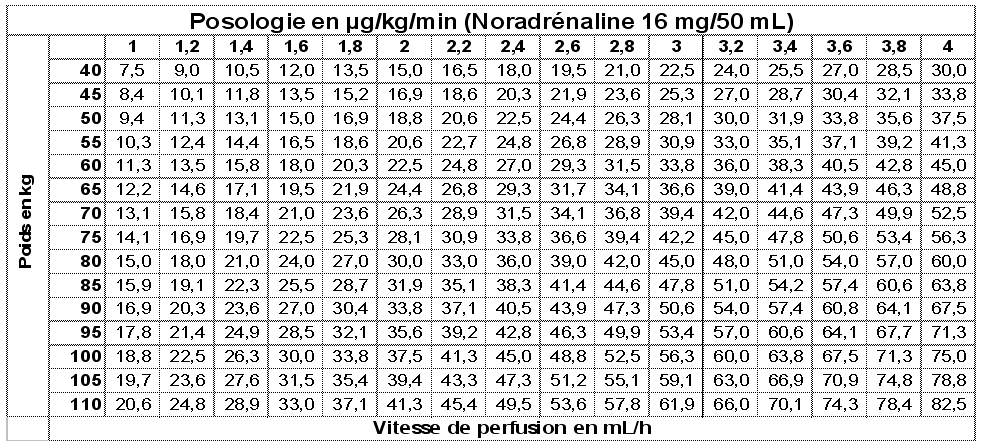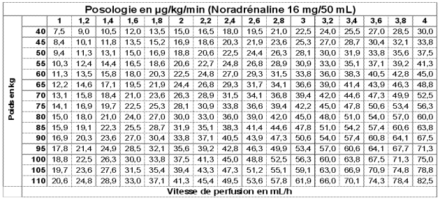 Pour une posologie de 2 µg/kg/min et un patient de 80 kg, il convient de régler le débit sur 30 mL/h