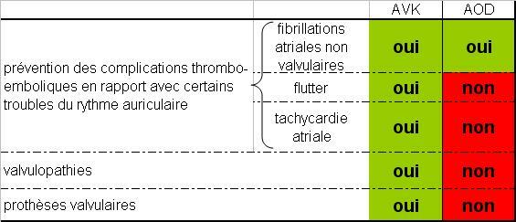 → exemples d'indications non superposables dans les cardiopathies emboligènes :