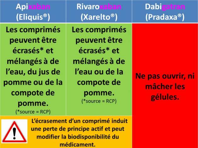Les AOD doivent être placés dans le pilulier dans leur blister d'origine (plaquette découpée)