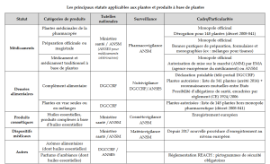 Tableau récapitulatif du Sénat sur la réglementation des plantes en France
