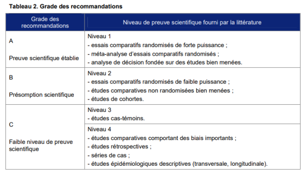 Une ressource scientifique est évaluée selon un niveau de preuves, c'est ce que l'on nomme l'EBM « Evidence-Based Medicine » pour la science basée sur les données probantes.