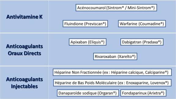 Vous trouverez dans le tableau ci-dessous le détail de la classification pharmaco-thérapeutique des anticoagulants présentés dans cette question :