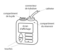 Cathéter/tubulure : relié au réservoir d'un côté et à une canule de l'autre
