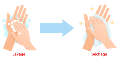 se laver les mains (lavage simple) ou friction avec une produit hydro-alcoolique