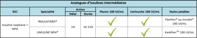 NE JAMAIS mettre en CONTACT l'insuline lente avec d'autres insulines. (sites d'injection différents)