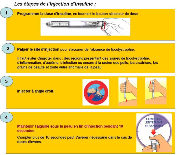Les étapes d'injection de l'insuline