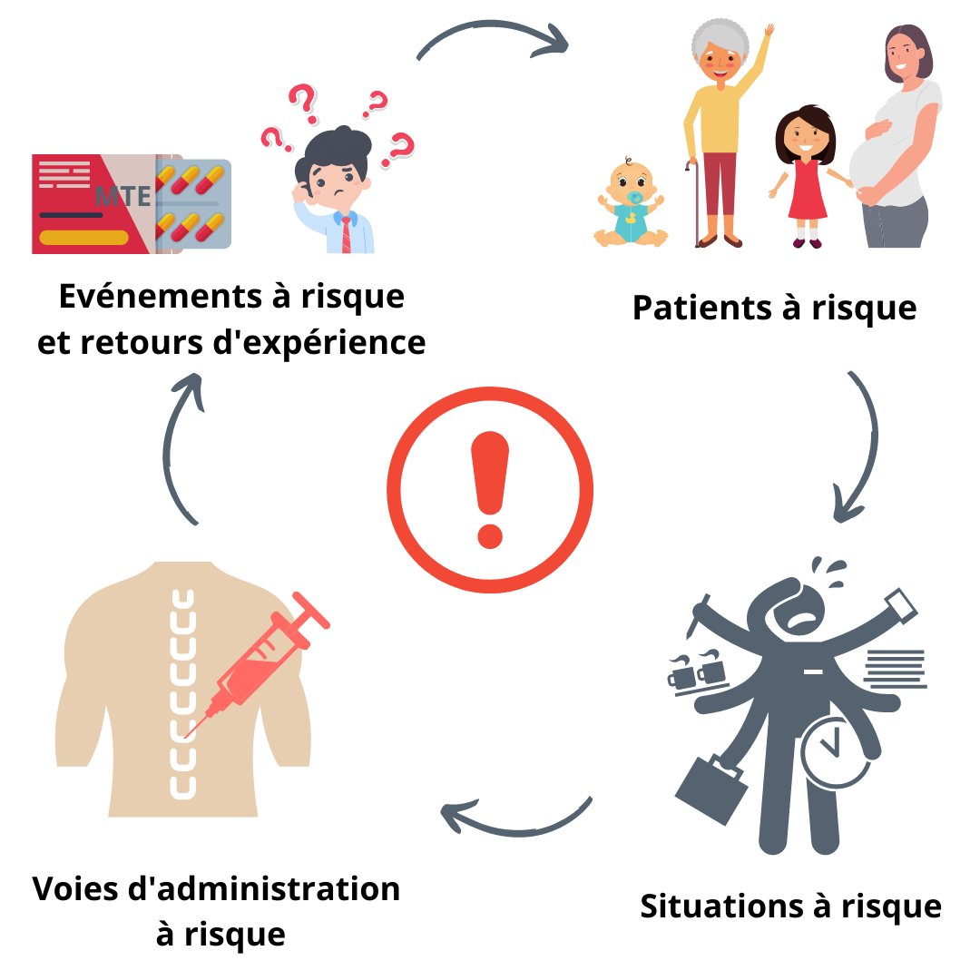Comme ceux rencontrés avec les médicaments à marge thérapeutique étroite, les médicaments inhabituels et/ou peu utilisés, les médicaments avec un rythme d'administration non journalier, les médicaments à consonance et/ou ressemblance proche, les nouveaux dosages et présentations de médicaments, etc.