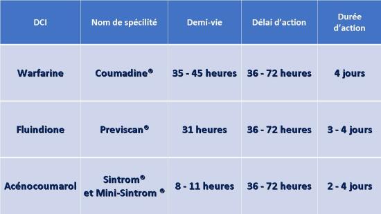 Une fois un traitement par AVK arrêté, il est actif encore pendant plusieurs jours : la surveillance de l'INR doit être poursuivie jusqu'à ce qu'il soit proche de 1.