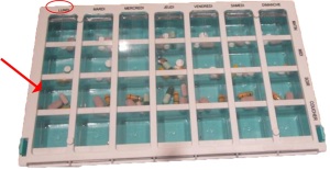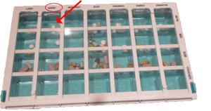 L'infirmière remarque que le pilulier du lundi soir est plein alors que le pilulier du mardi matin est vide. Elle questionne l'étudiante, et ensemble elles comprennent l'erreur d'administration.