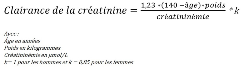 La clairance de la créatinine peut être calculée à l'aide de plusieurs formules :