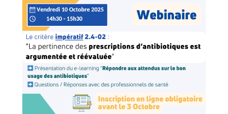 Retrouvez le replay du webinaire de présentation du module de e-learning sur les attendus HAS sur le bon usage des antibiotiques.