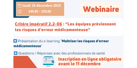 Les OMéDIT Centre-Val de Loire et Normandie vous proposent un webinaire de présentation du module de e-learning sur les attendus HAS sur les risques d'erreur médicamenteuse.