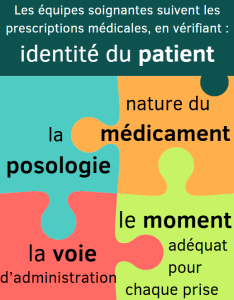 La sécurisation de l’administration médicamenteuse repose sur la règle fondamentale des 5B, règle dont il faut rechercher systématiquement la formalisation, la mise en œuvre et la maîtrise par les professionnels de santé concernés :