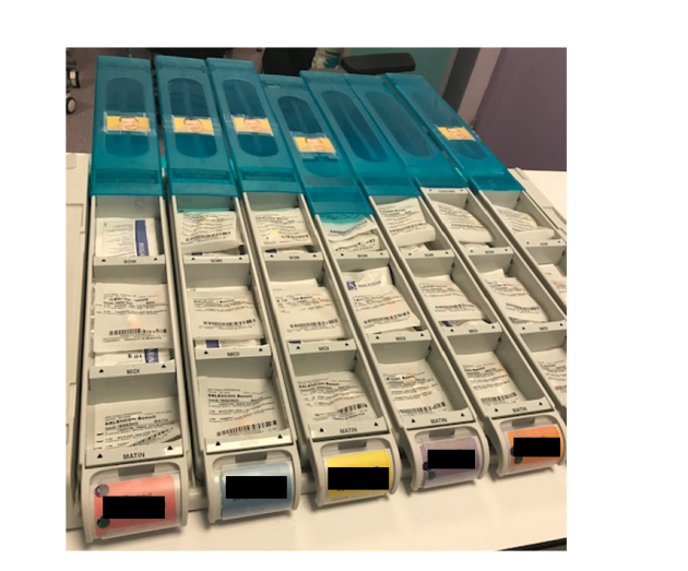 Ainsi une cupule/un gobelet ne contient pas les médicaments destinés à être administrés tout au long de la journée : ils contiennent les traitements pour une prise .