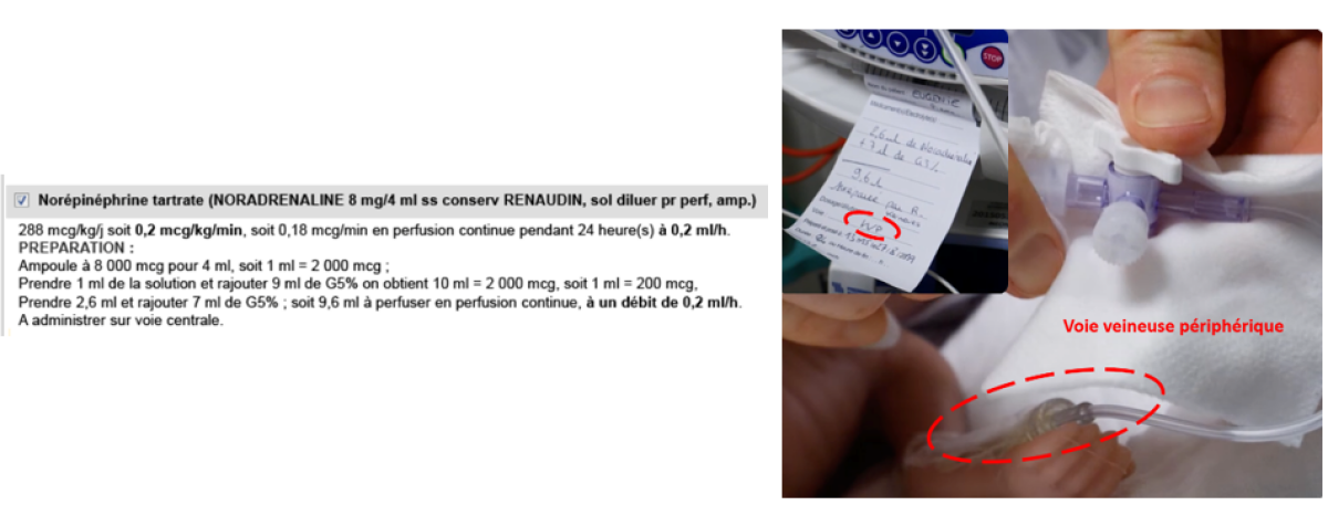 Erreur d'administration des catécholamines: