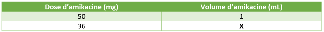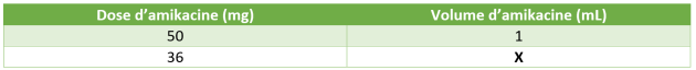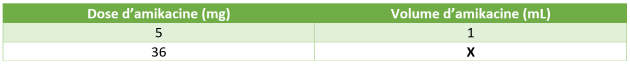 On obtient donc 50 mg de d'amikacine dilués dans 10 mL, soit une concentration de 5 mg/mL