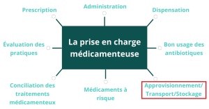 Les dispositions concernant l'approvisionnement, le stockage, le transport et applicables à l'ensemble des médicaments sont définis au niveau :