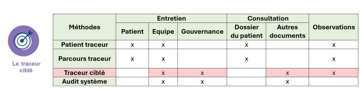 Pour le Critère 2.2-04 : les méthodes d'évaluation du critère sont le Traceur ciblé, avec échanges avec les professionnels, observation des pratiques, consultation de documents et l'Observation : contrôle du stockage des produits de santé est effectif avec retrait des périmes