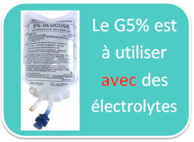 Si les solutions de G5 % sont utilisées seules comme apport liquidien sans apport d'électrolytes, leur administration peut entraîner une hyponatrémie et une hypokaliémie sévères.
