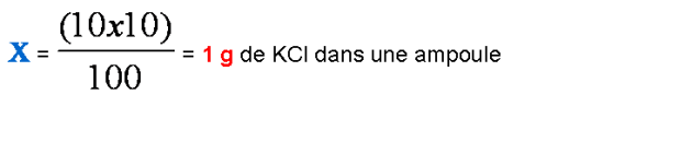 10% signifie que l'on trouve 10 g de KCl dans 100 mL.