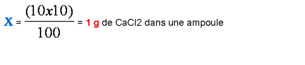 Il nous faut donc 2 ampoules de CaCl2, soit 20 mL, pour respecter la prescription de 2 g.