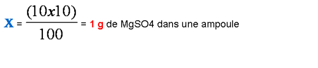 Il nous faut donc 1 ampoule de MgSO4, soit 10 mL.