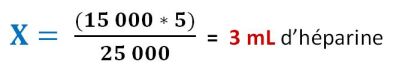 Il faudra donc prélever 3 mL d'héparine sodique pour avoir 15 000 UI.