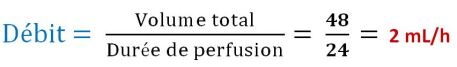 Ainsi, il faudra régler le débit de la seringue électrique à 2 mL/h.