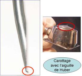 Source : C. Dupont, hôpital Cochin, AP-HP. présentation ppt :Soins sur Chambre à Cathéter Implantable (CCI) : Gérer les risques de la pose et du retrait d'une aiguille de Huber. Mars 2011