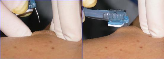 L'aiguille est enfoncée jusqu'à toucher le fond de la chambre (mais sans pression excessive) c'est à dire en "butée jusqu'à sentir le "dur"