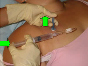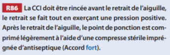 Après retrait de l'aiguille, le point de ponction est comprimé légèrement avec une compresse stérile imbibée d'antiseptique