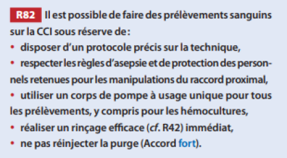 Cette pratique n'est pas recommandée et doit relever d'une décision médicale qui peut autoriser le prélèvement sanguin sur CCI pour le confort du patient.