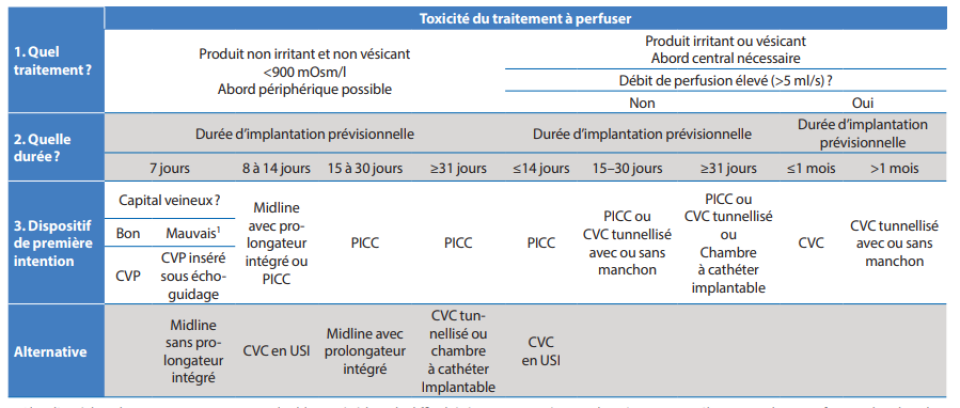 → arbre décisionnel de l'accès vasculaire -Guide SF2H «Prévention des infections liées aux cathéters périphériques vasculaires et sous-cutanés» - Mai 2019