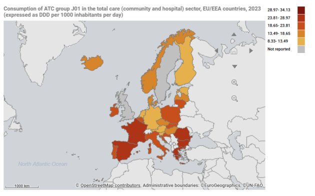 Malgré la chute de la consommation d'antibiotiques observée en 2020, la France restait le 4e pays le plus consommateur d'antibiotiques en Europe.