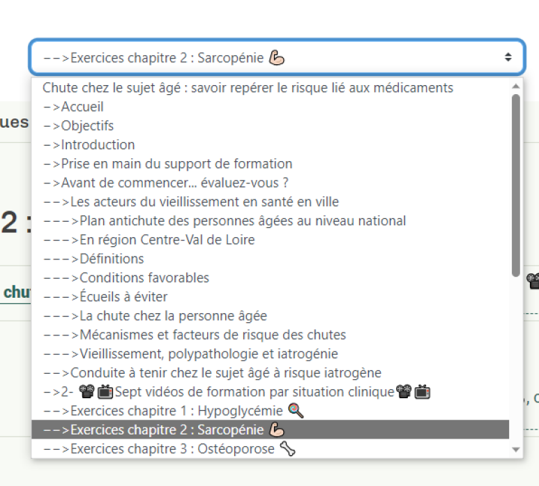 ou utiliser le menu déroulant au dessus de votre page pour accéder au menu du e-learning :