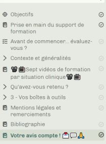 Les vidéos de formation (SUPPORT 2) 🎥 : 7 vidéos 🎥 de sensibilisation selon différentes situations cliniques👵👴 (disponibles en accès direct dans ce e-learning et sur le site de l'OMéDIT Centre-Val de Loire)