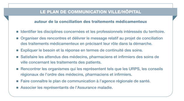 L'intégration de la conciliation médicamenteuse au sein des équipes et la communication auprès des acteurs de ville et du patient