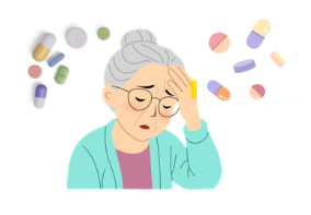 La polymédication est un facteur de risque important de iatrogénie médicamenteuse car les effets indésirables et les interactions médicamenteuses des médicaments se cumulent. Elle se définit comme la prise régulière d’au moins 5 médicaments (le plus souvent nécessaires au traitement de plusieurs maladies chroniques).