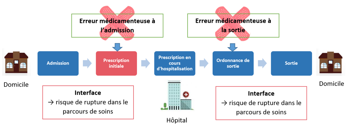 Elle prévient ou corrige les erreurs médicamenteuses en favorisant la transmission d'informations complètes et exactes sur les médicaments du patient, entre professionnels de santé aux point de transition que sont l'admission, la sortie et les transferts."