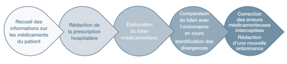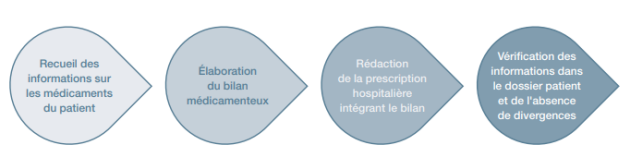 D'après le guide "Mettre en œuvre la conciliation des traitements médicamenteux en établissement de santé". HAS. février 2018