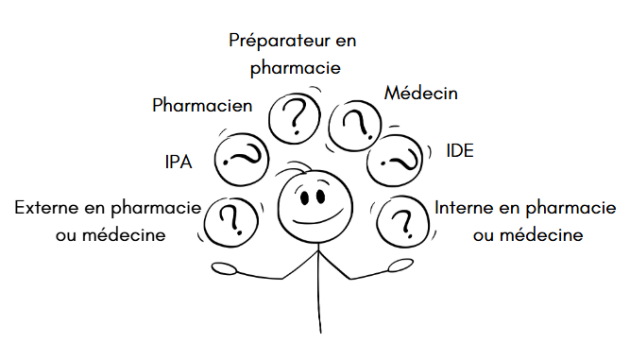 Recueil de l'information (recherche active) et Rédaction du bilan médicamenteux : médecin ou pharmacien, interne, externe, une sagefemme, un chirurgien-dentiste, un infirmier, un IPA, un préparateur en pharmacie hospitalière