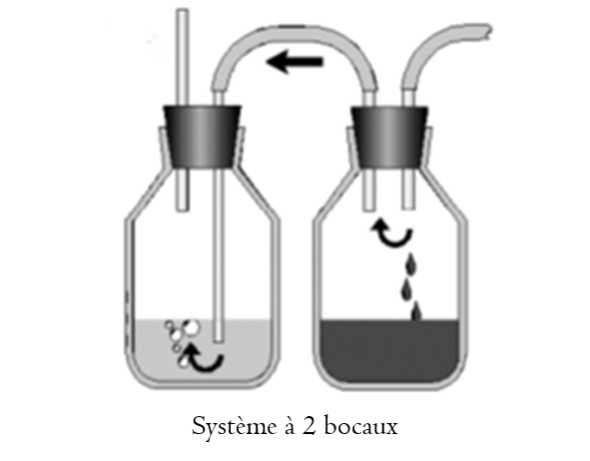 (De moins en moins utilisés → remplacés par un dispositif compact ("valise" transportable à usage unique) qui applique dans un même dispositif le principe des 3 bocaux, cf. page suivante)