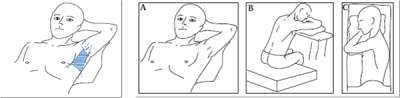 Préférer la position semi-assise au lit, bras du côté de la lésion derrière la tête