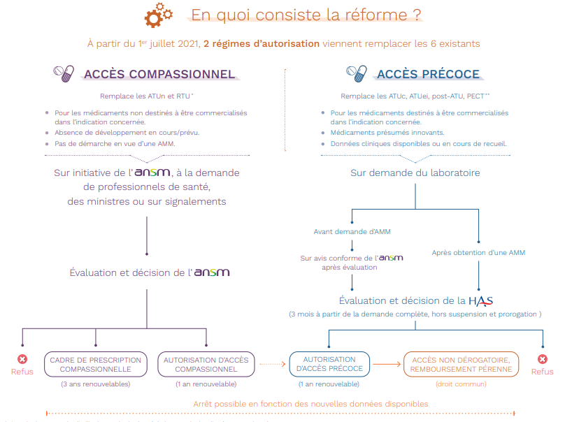 L’article 78 de la loi de financement de la sécurité sociale (LFSS) pour 2021 a modifié le système dérogatoire d’accès et de prise en charge des médicaments faisant l’objet d’autorisations temporaires d’utilisation ( les anciens ATU) et de recommandations temporaires d’utilisation (RTU).Cette réforme avait pour but de simplifier et d’harmoniser les procédures, de garantir un accès et une prise en charge immédiats des patients tout en assurant la soutenabilité financière du dispositif.