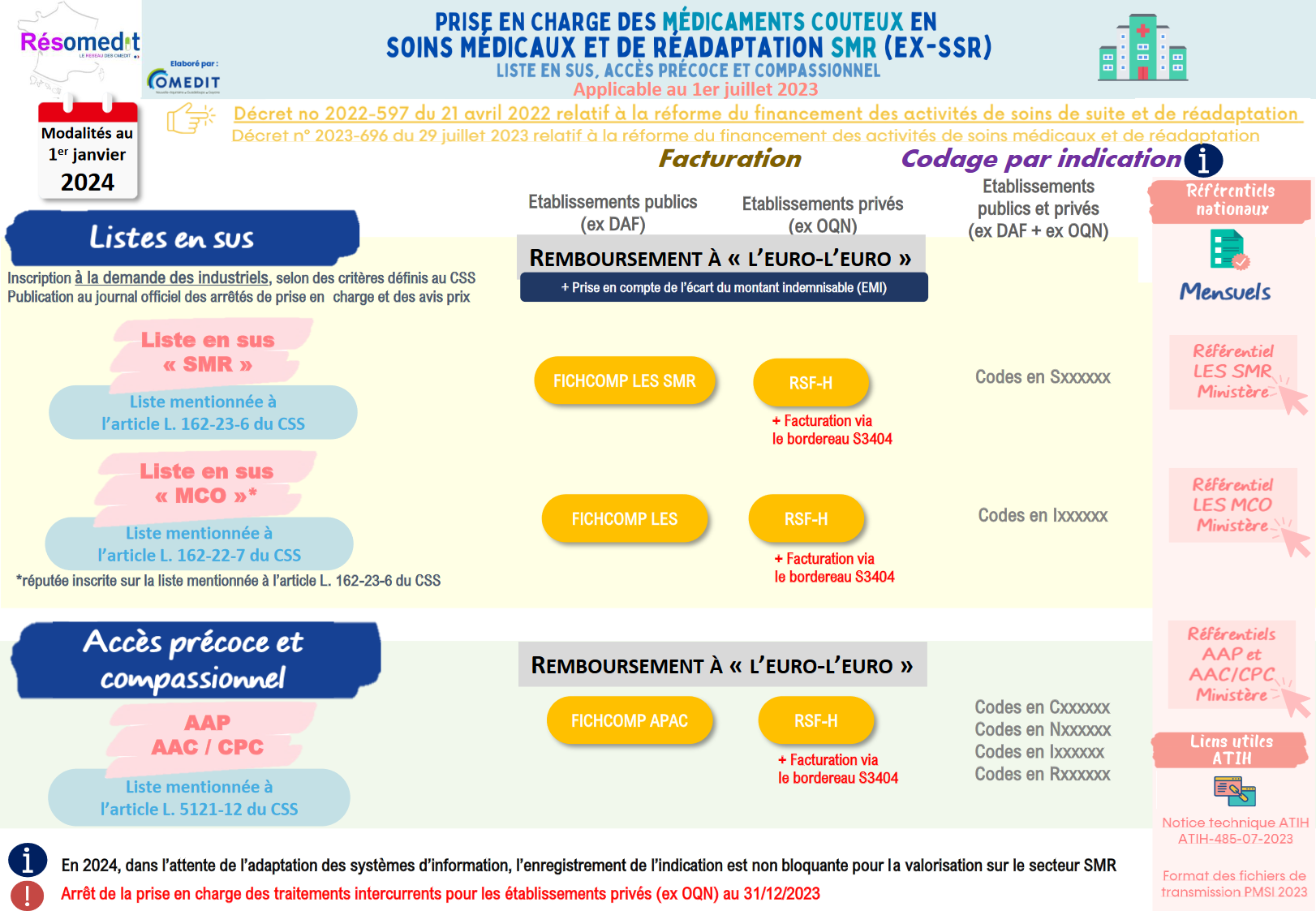 Le réseau des OMéDITS vous propose un visuel explicatif de la prise en charge des médicaments inscrits sur la LES SMR (cliquez sur l’image ci-dessous) :