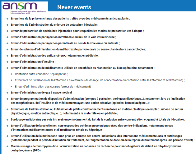 En complément : ce triptyque de l'OMéDIT Centre-Val de Loire, qui traite notamment de l'évolution de la liste des Never events.