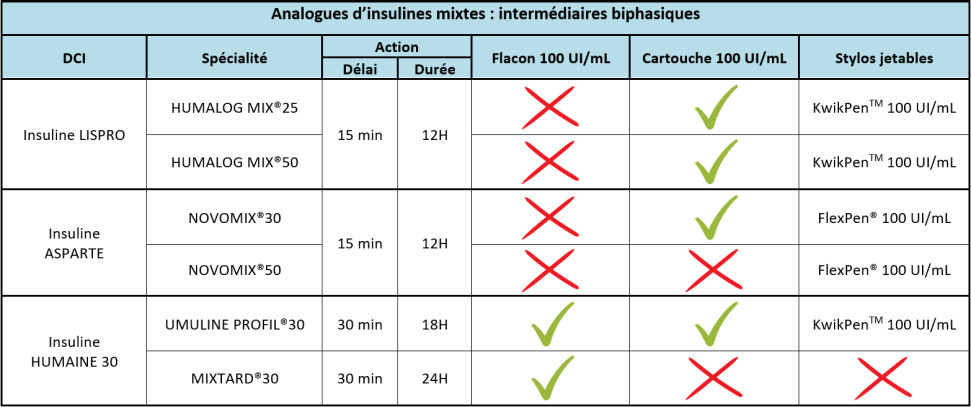 Insulines mixtes = mélange d'insulines