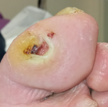 Les facteurs de retard à la cicatrisation peuvent être le non-respect de la décharge ou une décharge inadaptée. La présence d'hyperkératose est un signe d'hyper appui et donc de la décharge incomplète.