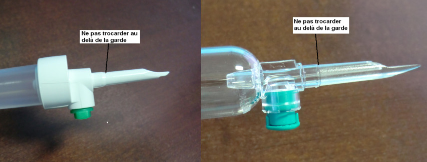 Il perce la membrane du contenant (septum de la poche, bouchon du flacon)