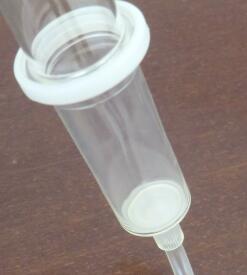 Après amorçage, la chambre compte-gouttes doit être remplie jusqu'au repère visuel (il se situe entre 1/2 et 3/4)